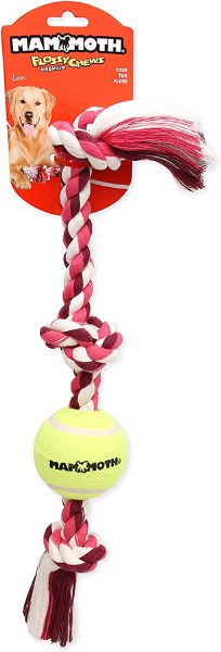 Medium 20-Inch Color 3 Knot Tug with 2 Tennis Balls. Made from premium Cottonblend Rope Fibers and includes 2 Tennis Balls that dogs love. Rope fibers floss dogs' teeth as they chew and play. A Tug shape creating interactive play. Great for small-medium dogs.